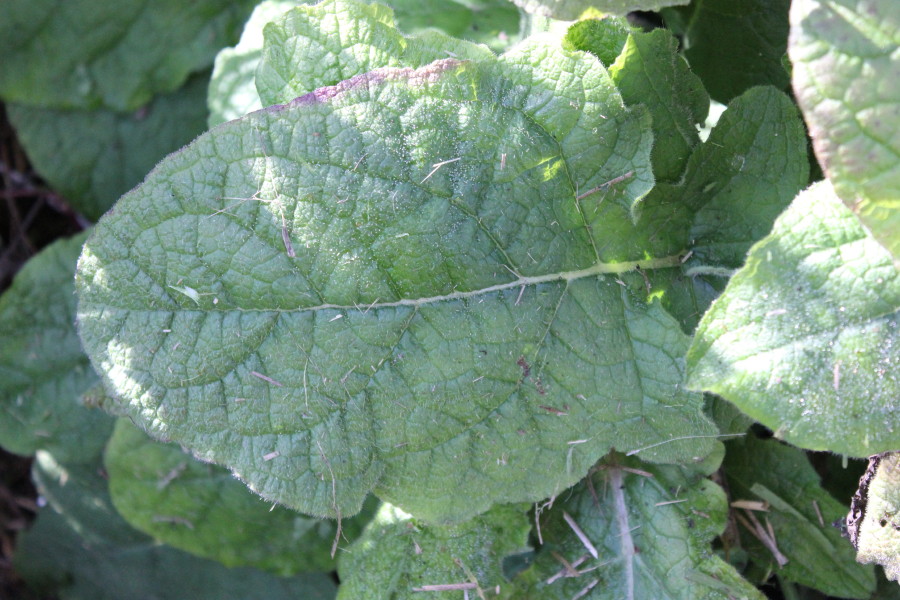 The above picture shows to good effect the foliage and flowering stems which most are showing seed developing in the brown calyx’s. This Salvia was introduced in 1880 and is named after Peter Forsskal of Finland who was a plant and zoological collector in southwest Arabia(Yemen) in the 18th century. In actual fact he contracted malaria in Yemen and died at the age of 31 in July 1763. Below you will see a close up of the leaf with its distinct veins and you can just make out the fine hairs that cover both sides as well. This gives it quite a furry feel when rubbed between your fingers.