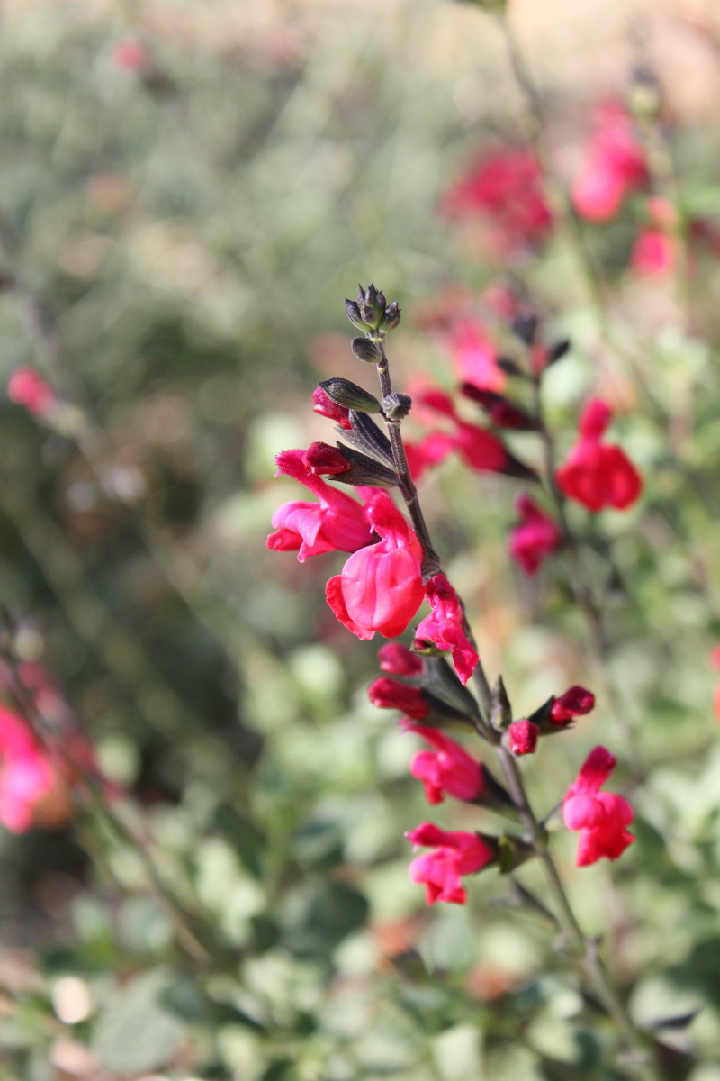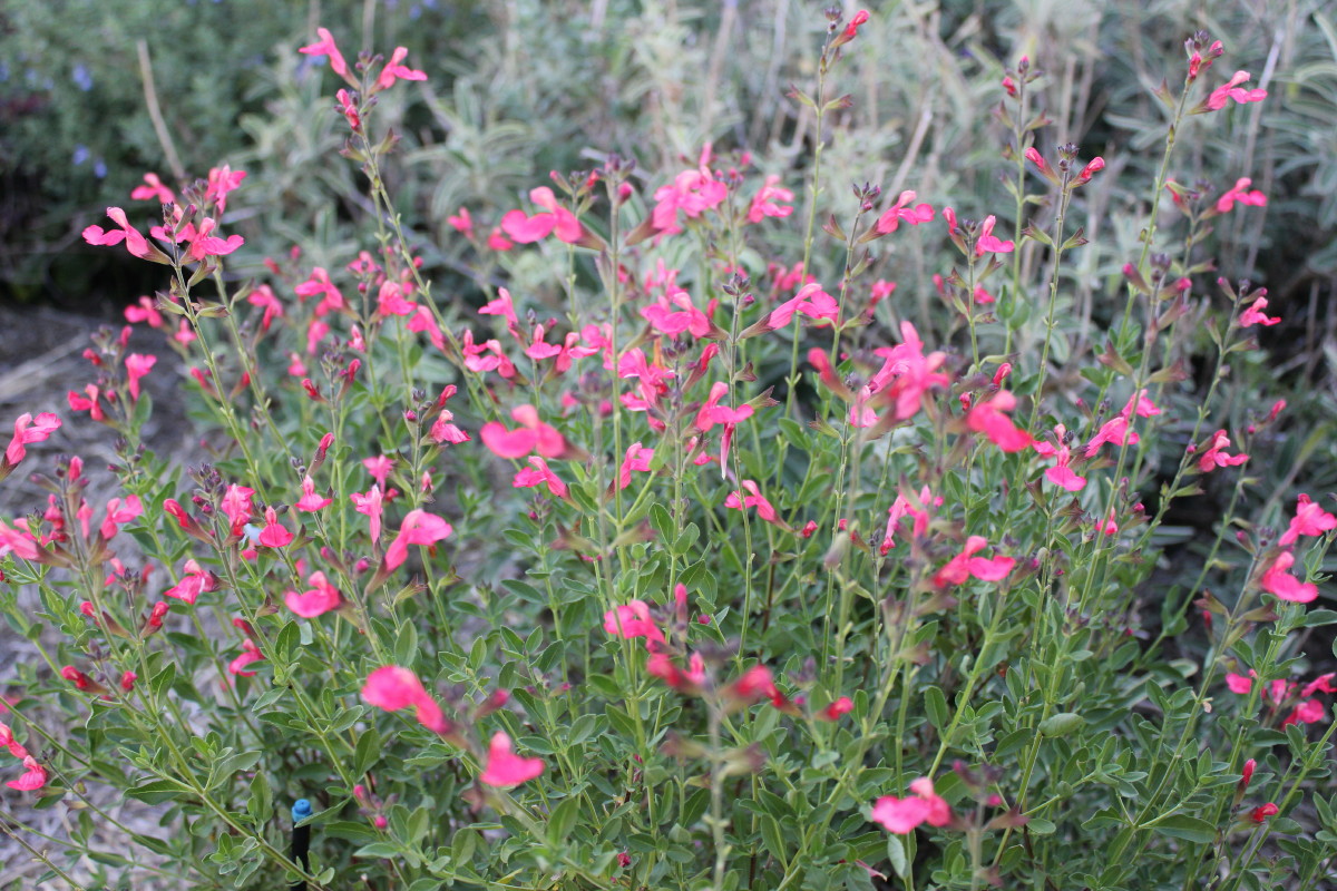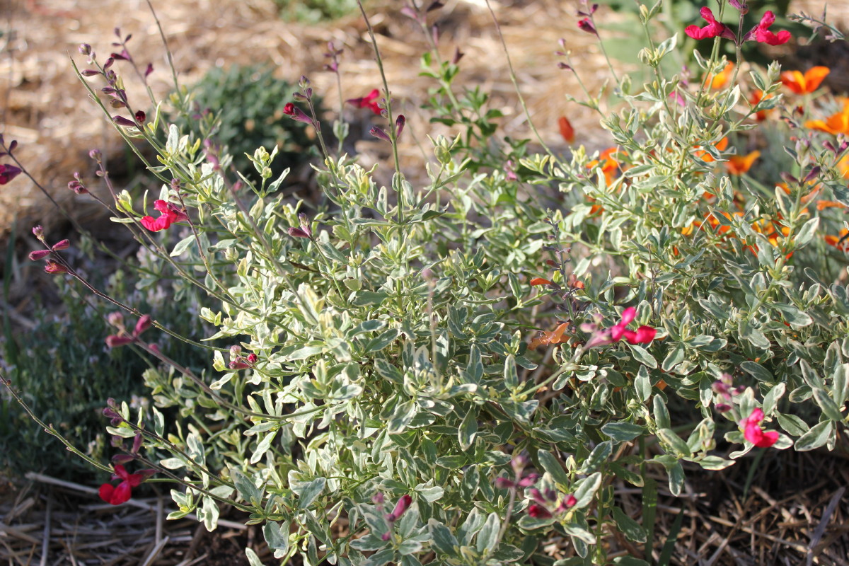 Here’s ‘Desert Blaze’ below with its bright red flowers and variegated leaves. Variegated foliage is not my thing and I think I only have two plants with variegated leaves. Both being Salvia’s, go figure!