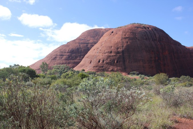 The next day dawned bright and not a cloud in sight, a bit different from yesterdays weather at Uluru(see part 11).  Todays adventure was being held at Kata Tjuta aka the Olga’s.  Another amazing landform not far from Uluru with rich cultural attachments for the local people.