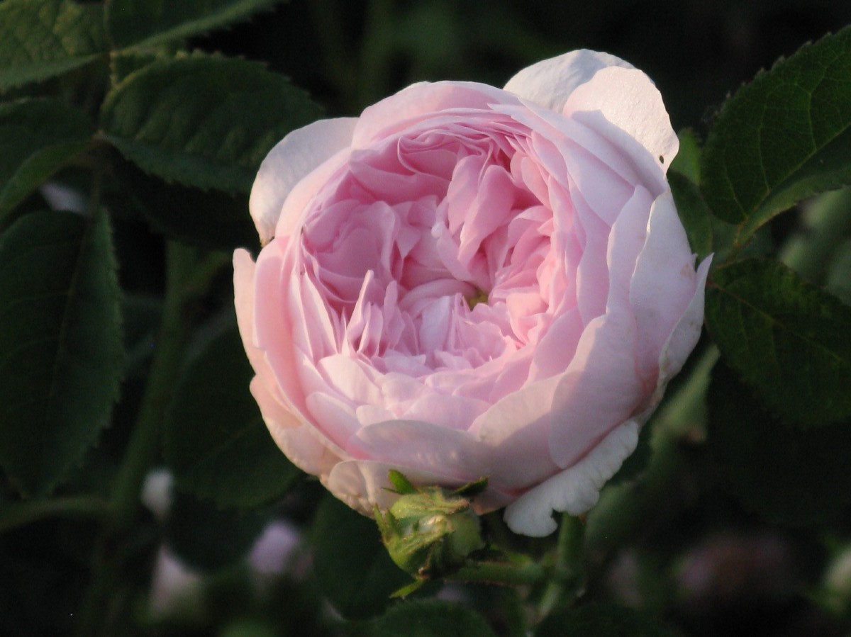 Mid rose-pink very double flowers that are highly fragrant blooming in spring. Lax shrub growing to 1.8 x 1.5m with dark grey-green foliage and few thorns. This rose is known for proliferation, which means another bud grows through the centre of the flower. Mine does this rarely and is not enough to bother about at all. Appeared around 1820’s